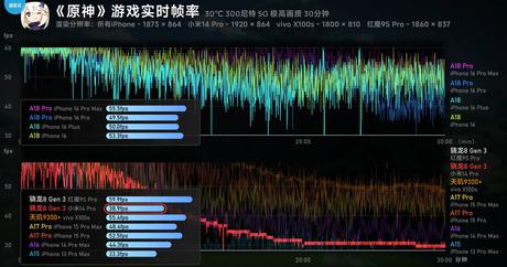 Pomimo niewielkiej różnicy w liczbie klatek na sekundę, stabilność rozgrywki na Red Magic 9S Pro była znacznie lepsza. Co ciekawe, iPhone 16 Pro z tym samym chipem A18 Pro pokazał tylko 49,5 FPS, co może wynikać z mniej wydajnego systemu chłodzenia. Jednocześnie iPhone 16 i iPhone 16 Plus z chipem A18 wykazały wyższą liczbę klatek na sekundę niż iPhone 16 Pro.