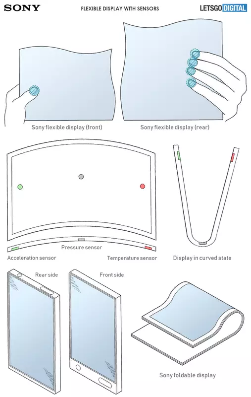Dokumenty opisują „urządzenie składane z czujnikami na wyświetlaczu”. W rzeczywistości jest to elastyczny wyświetlacz z trzema głównymi czujnikami bezpośrednio na ekranie: czujnik temperatury, ciśnienia i przyspieszenia. Pomogą dowiedzieć się, w jakiej pozycji użytkownik trzyma smartfon, aby zapewnić najlepszą czułość interfejsu.