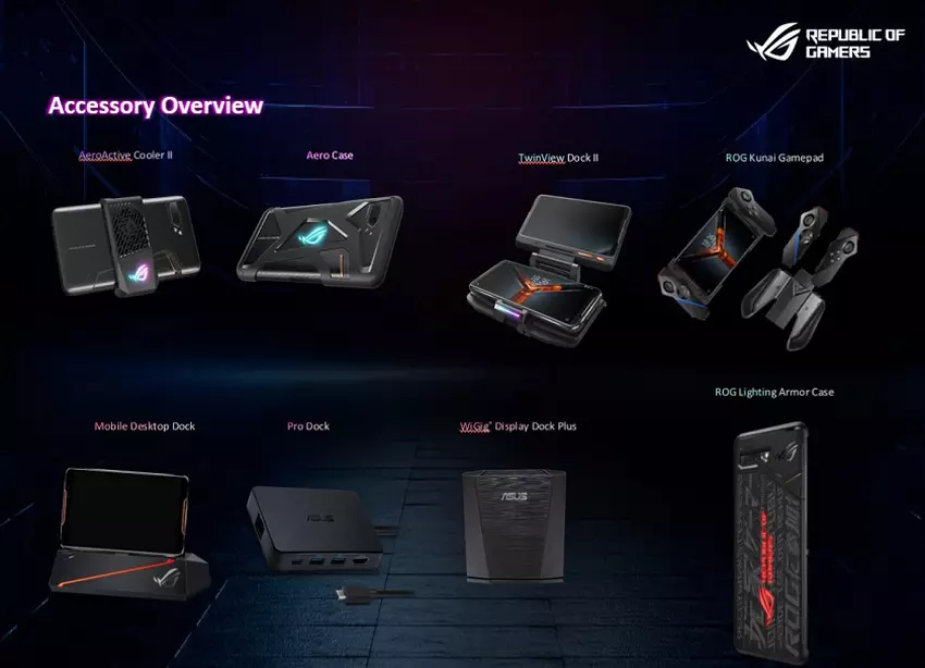 Ponadto Asus wyda aktualizowaną linię akcesoriów do gier dla nowego urządzenia: gamepad ROG Kunai z dwoma oddzielnymi regulatorami, stacja dokująca TwinView Dock II, okładki i wentylator AeroActive Cooler.