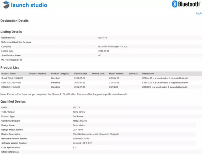 Na stronie internetowej Bluetooth Special Interest Group (SIG) pojawiły się 4 nowe modele zegarków Huawei. są one ponumerowane CSN-BX9, CSN-AL00, CSN-AL01 i ALX-AL10.