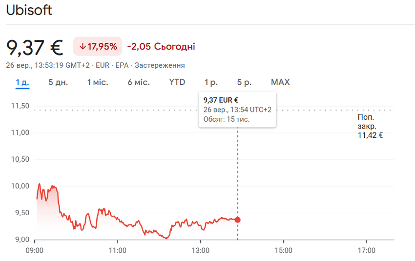 Akcje Ubisoft są obecnie warte 9,3 euro. Ostatni raz akcje firmy kosztowały tyle w 2013 roku. Później wartość papierów wartościowych Ubisoft rosła, a w 2018 roku akcje były już warte ponad 100 euro, ale teraz wszyscy jesteśmy świadkami gwałtownego spadku.