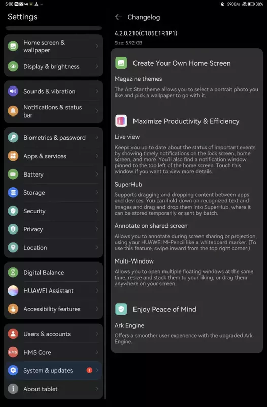 System otrzymał numer kompilacji HarmonyOS 4.2.0.210 i waży prawie 6 GB. Aktualizacja jest już wprowadzana falami na urządzenia na rynku globalnym.