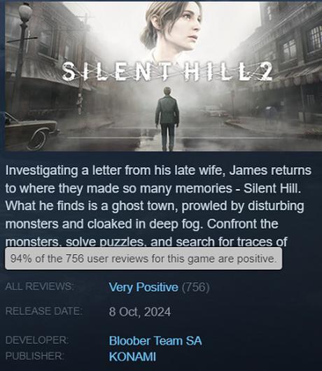 Cóż, fani Silent Hill mogą się zrelaksować i czekać na premierę: opinie graczy były "bardzo pozytywne". Użytkownicy Steam zgadzają się z krytykami i chwalą Bloober Team za ich pracę. Gracze docenili staranne potraktowanie materiału źródłowego, zachowanie przerażającej atmosfery, ulepszenia rozgrywki, zwiększoną różnorodność zagadek, rozszerzenie niektórych wątków fabularnych i oczywiście świetną oprawę audiowizualną: gra brzmi i wygląda świetnie.