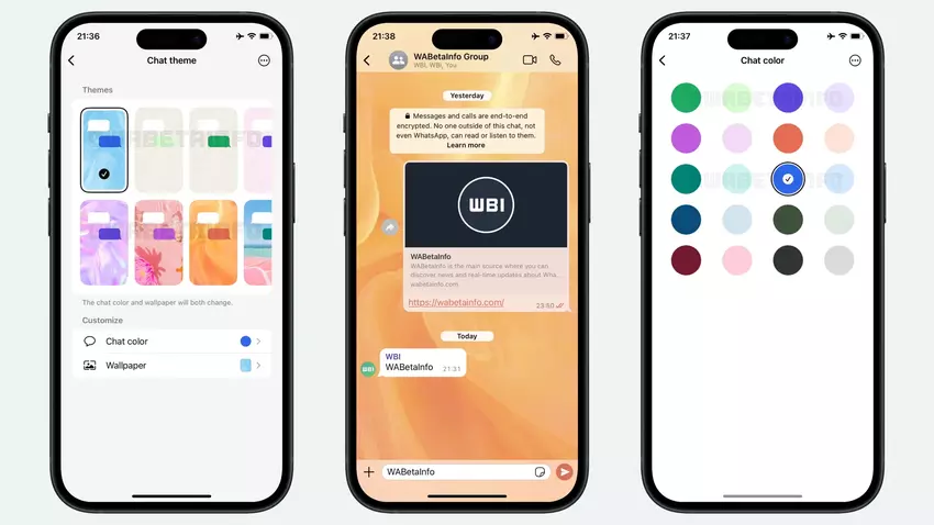Użytkownicy mogą teraz wybierać projekty czatów spośród 22 różnych motywów i 20 kolorów. W sekcji informacji o czacie można ustawić kolor, a następnie WhatsApp automatycznie wybierze odpowiednią tapetę. Użytkownicy mogą również zmienić tapetę ręcznie, aby nadać każdemu czatowi niepowtarzalny wygląd.
