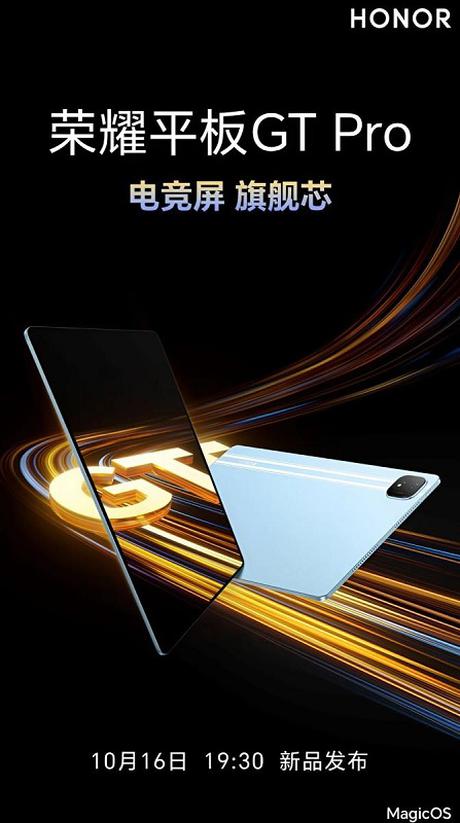 Na oficjalnej stronie w chińskim serwisie społecznościowym Weibo producent poinformował, że 16 października zaprezentuje swoje nowe produkty, wśród których znajdzie się tablet dla graczy Honor Tablet GT Pro.
