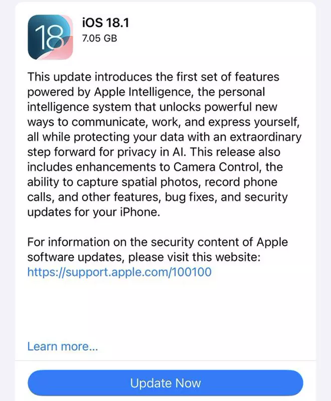 Aktualizacja jest już dostępna, aby wymusić sprawdzenie jej dostępności należy przejść do Ustawienia - Ogólne - Aktualizacja oprogramowania. Aktualizacja ma oznaczenie techniczne 22B83 i zajmuje ponad 1 GB. Aktualizacja iPadOS 18.1 jest również dostępna dla posiadaczy iPadów.