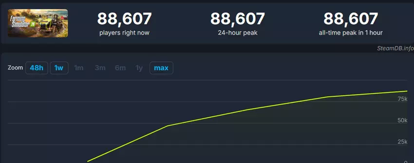 Prasa zareagowała spokojnie na premierę Farming Simulator 25 - na Metacritic gra ma tylko dwie recenzje i obie z wynikiem 75 punktów. Ale użytkownicy Steam byli tak aktywni w zamówieniach przedpremierowych, że gra weszła do pierwszej dziesiątki wykresu sprzedaży Steam. W chwili pisania tego tekstu szczyt online przekroczył 88 tysięcy osób na Steam, ale gra ma jak dotąd mieszane recenzje.