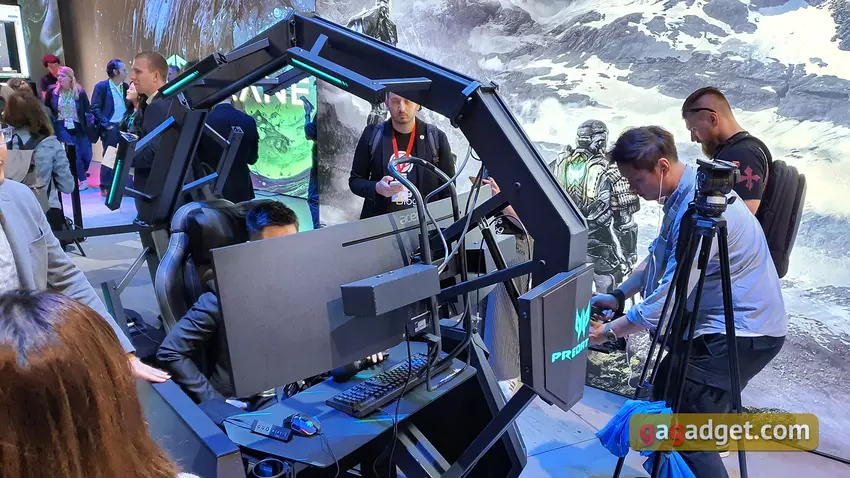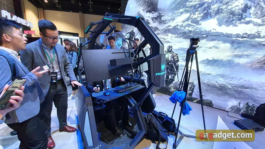 Acer wprowadził swoje pierwsze modułowe krzesło do gier Thronos rok temu. W tym roku pokazano zaktualizowany model Predator Thronos Air. W rzeczywistości jest to cała kapsuła do gier, która składa się z kilku podstawowych elementów: fotela do gier, modułowego stołu i uchwytu na trzy monitory. Fotel można regulować w zakresie od -130 do 180 stopni i ma funkcję masażu. Jest regulowany podnóżek.