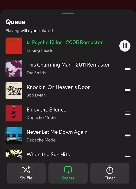 Nowy wygląd kolejki wygląda bardziej nowocześnie i zawiera całkowicie przeprojektowane elementy interfejsu. W dolnej części ekranu użytkownicy mogą przełączać się między trybami odtwarzania losowego, powtarzania i timera. W górnej części ekranu znajdują się przyciski odtwarzania i pauzy, a także informacje o bieżącym utworze.
