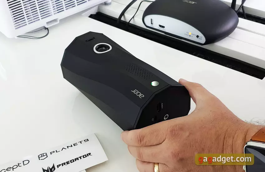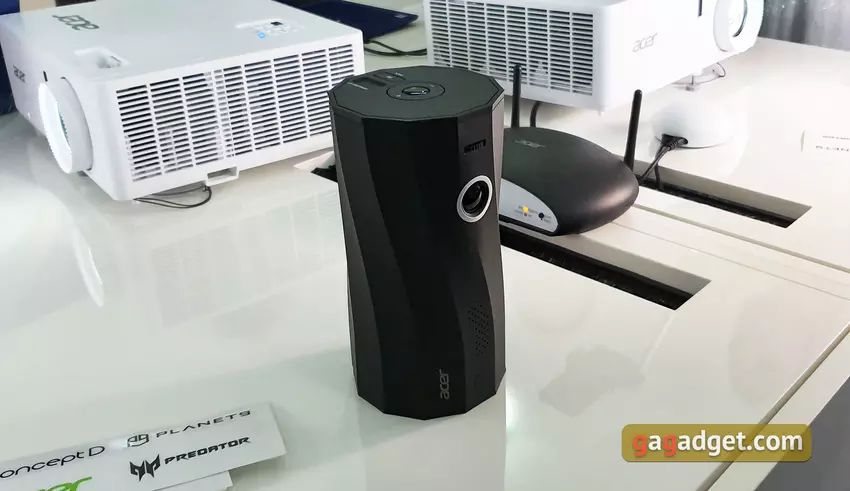 Z interesujących i nietypowych urządzeń na targach IFA 2019 firma pokazała przenośny projektor DLP Acer C250i o rozdzielczości FullHD. Projektor może odtwarzać obraz w orientacji poziomej i pionowej, pod dowolnym kątem. Projektor jest wyposażony we wbudowaną baterię, która wystarcza na 5 godzin pracy na baterii, a ponadto są wbudowane głośniki o mocy 5 watów. Możesz podłączyć się do projektora bezpośrednio ze smartfona bezprzewodowo. Deklarowana żywotność lampy wynosi 30 000, gama kolorów stanowi 100% przestrzeni kolorów NTSC, jasność wynosi 300 lumenów ANSI, a kontrast wynosi 5000: 1. Dostępne do sprzedaży w styczniu za 2340 złotych.