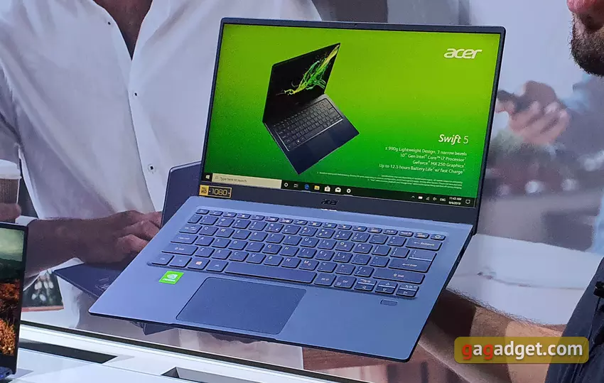 Oprócz linii ConceptD zaktualizowano również ultraprzenośne modele. W szczególności jeden z najlżejszych 14-calowych modeli Swift 5 na świecie otrzymał zaktualizowaną konstrukcję i wypełnienie. Obudowa jest nadal wykonana ze stopów magnezu i litium oraz magnezu-aluminium, dzięki czemu udało się uzyskać masę 990 g. Dostępne będą opcje niebiesko-białe. Laptop ma 14-calowy wyświetlacz IPS o rozdzielczości 1920 × 1080, a wewnątrz - nowy procesor Intel Core i7-1065G7 z rodziny Ice Lake ze zintegrowaną kartą graficzną Intel Iris Plus, pojawią się konfiguracje z dyskretną kartą graficzną GeForce MX250. Jako dysk używany jest dysk SSD 512 GB, jest USB-C z obsługą Thunderbolt 3, a żywotność baterii dochodzi do 12,5 godziny. Laptop pojawi się w marcu w listopadzie w cenie 4307 złotych.