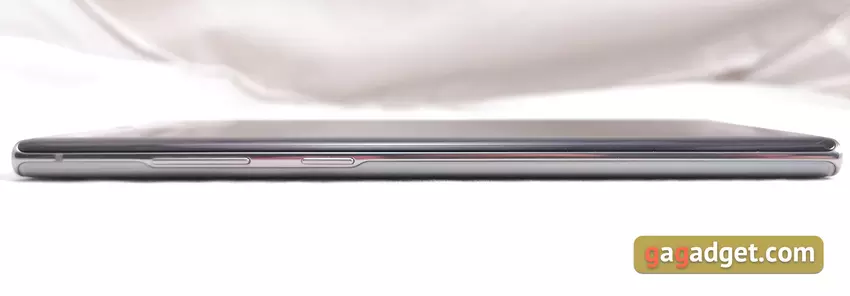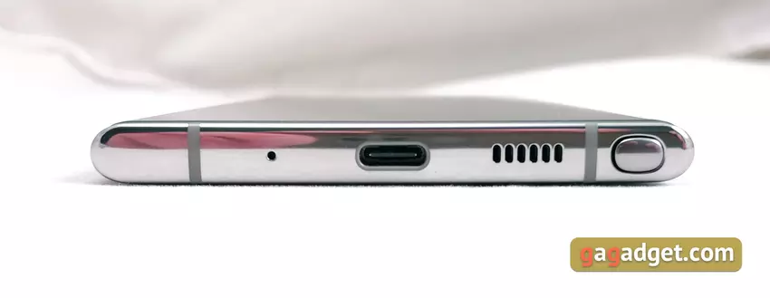 Smartfon okazał się duży i ciężki: 162,3x77,2x7,9 mm, 196 g, choć różnica z Note9 nie jest bardzo mała: 161,9x76,4x8,8 mm, waga 201 g. Przypomne, że przekątna wyświetlacza wzrosła z 6,4 do 6,8 cali. Oczywiście rozmiar smartfona nie jest odpowiedni dla wszystkich, ale dla miłośników modeli z dużymi ekranami są całkiem odpowiedni. Kształt obudowy jest dość wygodny (o ile to możliwe z uwzględnieniem wymiarów). Jedynym pytaniem jest lokalizacja przycisków. Używam smartfonów lewą ręką i bardzo szybko przyzwyczaiłem się do Samsunga Galaxy Note10 +. Wizualnie smartfon robi wrażenie, no i z montażem i materiałom wszystko jest w porządku, jak zawsze w przypadku flagowców Samsunga.