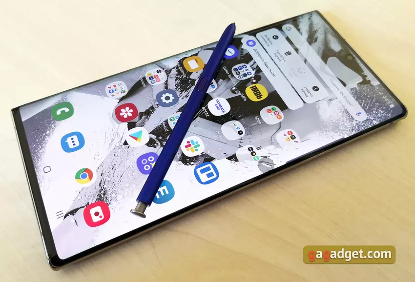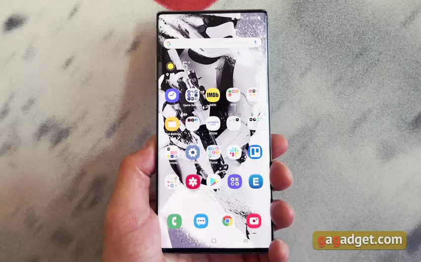 Jest naprawdę wiele innowacji: wyświetlacz stał się jeszcze większy i prawie całkowicie utracił ramki na obwodzie, co pociągneło za sobą zastosowanie zamontowanej z przodu 10-megapikselowej kamery umieszczonej na ekranie, która znajduje się na środku. Ekran ma już 6,8 cala, zakrzywiony DynamicAMOLED o rozdzielczości 3040 x 1440 pikseli. Ultradźwiękowy skaner linii papilarnych jest w nim wbudowany. Skaner podczerwieni tęczówki został odrzucony. Kamera główna otrzymała cztery moduły: główny 12 MP (f / 1,5 - f / 2.4) ze stabilizacją optyczną, teleobiektyw 12 MP, f / 2.1, OIS, 2x zoom, ultra szeroki 16MP, f / 2.2, 123 ° i 3D ToF VGA dla określanie odległości od obiektów i ich kształtu. Aktywny rysik S Pen uzyskał nowe funkcje: w trybie zdalnego sterowania są teraz nie tylko kliknięcia, ale także gesty, co nieco rozszerza możliwe przypadki użycia. Wewnątrz znajduje się najwyższej klasy procesor Samsung Exynos 9825. Główną różnicą w stosunku do 9820 jest nowa technologia procesowa EUV 7 nm. Plus trochę przetaktowany układ graficzny. Reszta wszystko pozostało takie samo. Pamięć RAM w smartfonie - 12 GB, wbudowana 256 lub 512 GB szybkiego UFS 3.0 plus gniazdo microSD. Smartfon ma imponującą baterię na 4300 mAh, obsługuje szybkie ładowanie 45 watów za pomocą kabla i połączenia bezprzewodowego do 15 watów. Plus jest odwrotne bezprzewodowe ładowanie akcesoriów. Z dodatkowego dobra: smartfon nadal ma ochronę przed wodą i kurzem zgodnie ze standardem IP68, z negatywu - firma postanowiła usunąć gniazdo słuchawkowe 3,5 mm.