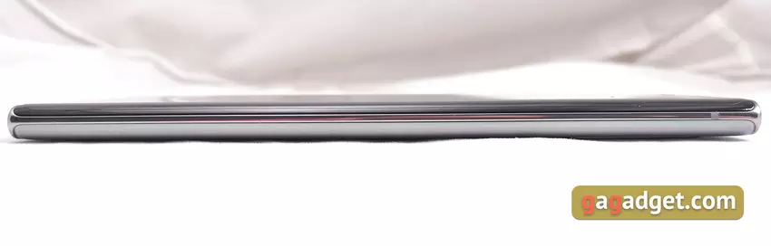 Smartfon ma 6,8-calowy ekran Dynamic AMOLED z zakrzywionymi bokami i wydłużonym współczynnikiem kształtu 19: 9 oraz okrągły dekolt kamery przedniej. Rozdzielczość wynosi 3040 x 1440 (WQHD +), gęstość pikseli - 498 ppi. Oczywiście Samsung zainstalował najbardziej wyrafinowany z dostępnych wyświetlaczy w firmie. Obsługuje standard HDR10 + i ma 100% gamę kolorów DCI-P3. Twierdzi się, że maksymalna jasność na słońcu może osiągnąć 800 cd / m2, a maksymalna jasność wynosi 1200 cd / m2. Ekran jest naprawdę doskonały i prawie pozbawiony typowych problemów AMOLED: pod kątem biały nie zmienia koloru na zielony, a migotanie PWM nie jest tak wyraźne w porównaniu do większości OLED / AMOLED. Ekran nie blaknie na słońcu.