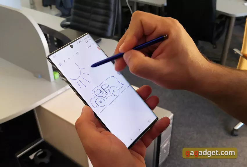 Sam S Pen jest fizycznie praktycznie niezmieniony w porównaniu do ubiegłego roku. Chyba że teraz jest całkowicie monochromatyczny, bez błyszczącej wkładki z logo Samsung. Tak jak poprzednio, może rozpoznać 4096 stopni nacisku i wyznaczyć nachylenie. Istnieją standardowe aplikacje i funkcje standardowe, w tym Samsung Notes, PENUP, część zapisywania ekranu i adnotacji, GIF-y na żywo, możliwość robienia szybkich notatek bezpośrednio na zablokowanym ekranie, pismo odręczne i tłumacz. W programie Samsung Notes możesz konwertować odręczne notatki na tekst i natychmiast wysyłać je do dokumentu programu Word. PENUP to aplikacja do rysowania z wbudowanymi kolorowaniami i oryginalnymi lekcjami rysowania wizualnego. Oprócz standardowych aplikacji, S Pen świetnie współpracuje z innymi firmami, na przykład Autodesk Sketchbook lub Concepts..