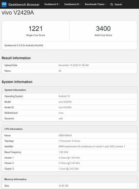 Podstawowy Vivo S20 przeszedł test wydajności w Geekbench i ujawnił swój procesor