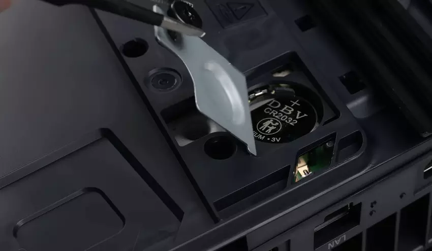 W standardowych PS5 i PS5 Slim bateria ta znajduje się pod płytą główną, co utrudnia jej wymianę. W PS5 Pro bateria znajduje się pod pokrywą konsoli głównej i jest chroniona przez oddzielną płytkę, którą można zdjąć za pomocą jednej śruby. Znacznie ułatwia to wymianę baterii w przypadku jej awarii.
