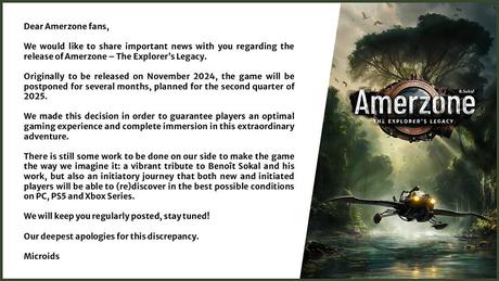 Firma ogłosiła, że premiera Amerzone: The Explorer's Legacy została przełożona na drugi kwartał 2025 roku.