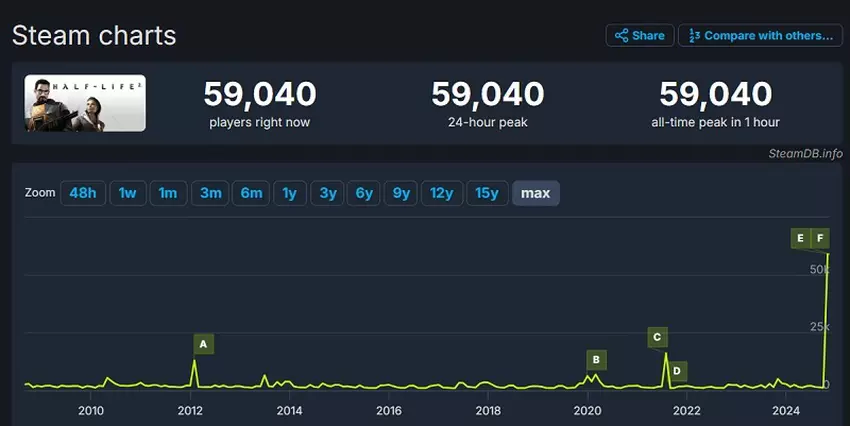 Half-Life 2 to gra, która została wydana w 2004 roku, dostała nowe życie i ponownie stała się hitem! Liczba jednoczesnych graczy w Steam pozwoliła strzelance ustanowić rekord szczytu online - liczba ta zbliża się do 60 000 osób.