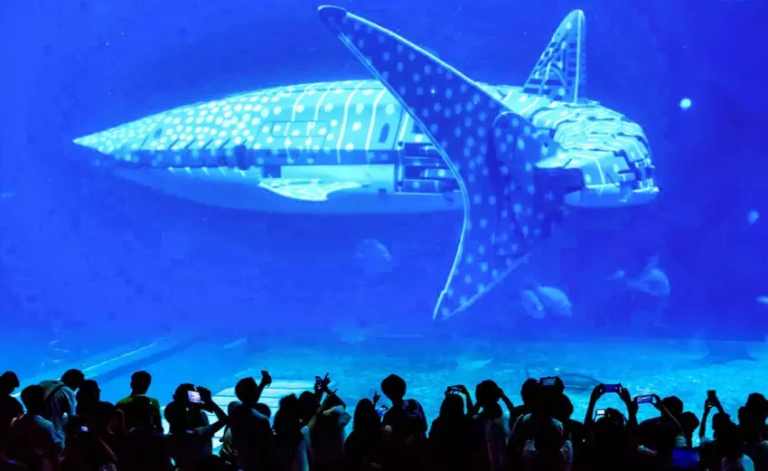 Utrzymanie i opieka nad rekinem wielorybim kosztuje ponad 14 milionów dolarów rocznie, a chińscy inżynierowie stworzyli robota rekina, który ma 4,7 metra długości, waży 430 kg i naśladuje ruchy swojego prototypu.