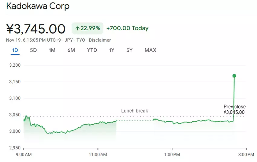 Wciąż nie można powiedzieć, na ile ta wiadomość odpowiada rzeczywistości, ale giełdy natychmiast zareagowały na nią, a wartość akcji Kadokawa na giełdzie w Tokio wzrosła o 23% i ustanowiła rekord.