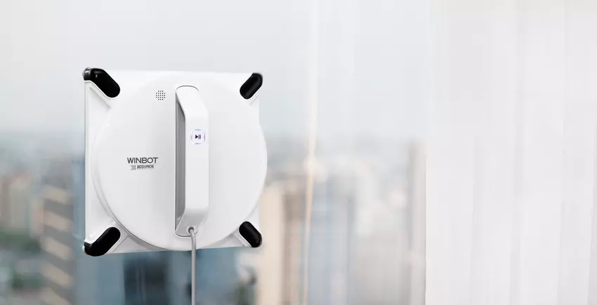 Ecovacs Winbot 950 należy do bardziej egzotycznej klasy robotów . Mocno przyczepia się do pionowych, a nawet stromych powierzchniach dzięki pompie próżniowej, która tworzy strefę zmniejszonego ciśnienia między środkową częścią korpusu a szkłem. Czterostronny zderzak rozpoznaje granice czyszczonego obszaru i inne przeszkody. Z kolei czujniki wykrywania krawędzi pozwalają na pracę na płaszczyznach bez ramy (na przykład na szklanych ściankach prysznicowych).