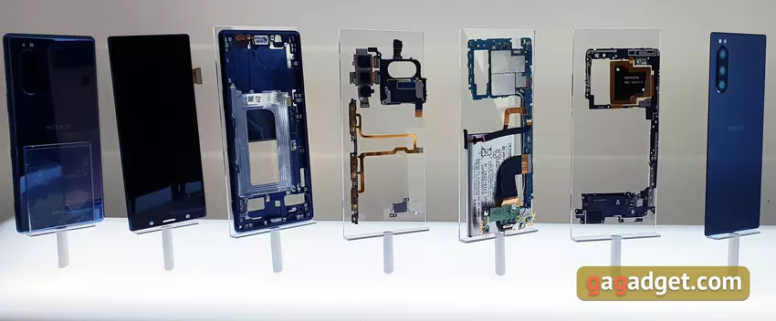 Wnętrza Sony Xperia 5 całkowicie powtarzają starszego brata: procesor Qualcomm Snapdragon 855, 6 GB pamięci RAM i 128 GB pamięci wewnętrznej, gniazdo microSD, dwuzakresowe Wi-Fi z obsługą MIMO 2x2, NFC i Bluetooth z obsługą kodeków LDAC i aptX HD. Bateria straciła nieco na wadze: 3140 mAh (w porównaniu do 3330 dla Xperia 1) z obsługą szybkiego ładowania Zasilanie za pośrednictwem Type-C. Nadal nie ma ładowania bezprzewodowego. Z autonomii nie warto czekać na żadne objawienia. Nie byliśmy w stanie uruchomić testów porównawczych na próbce, chociaż wypełnienie jest już znane i prawdopodobnie nie będzie problemów z wydajnością.