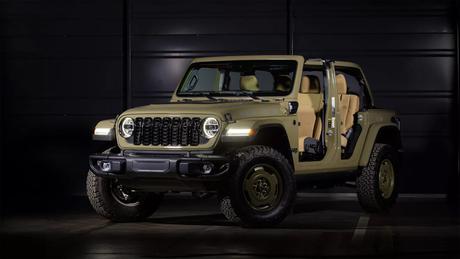 Specjalna wersja Jeepa Wranglera 4xe, w cenie od 59 930 USD, ma oryginalny design: oliwkowozielony kolor nadwozia, typowy dla pojazdów wojskowych z lat 40. i niebieskie napisy, stylizowane na oznaczenia amerykańskich pojazdów wojskowych. 17-calowe felgi aluminiowe są pomalowane w kolorze nadwozia i wyposażone w 33-calowe opony terenowe.
