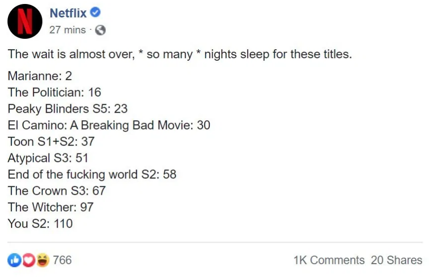 Według strony Redanian Intelligence, to 11 września oficjalne konto Netflix na Facebooku opublikowało post z liczbą dni przed premierą serialu. Wśród „Crown” i „End *** of the Underworld” do listy trafił także „Wiedźmin”, który ukaże się za 97 dni. Biorąc pod uwagę, że publikacja została wydana 11 września, serial zobaczymy 17 grudnia 2019 r.
