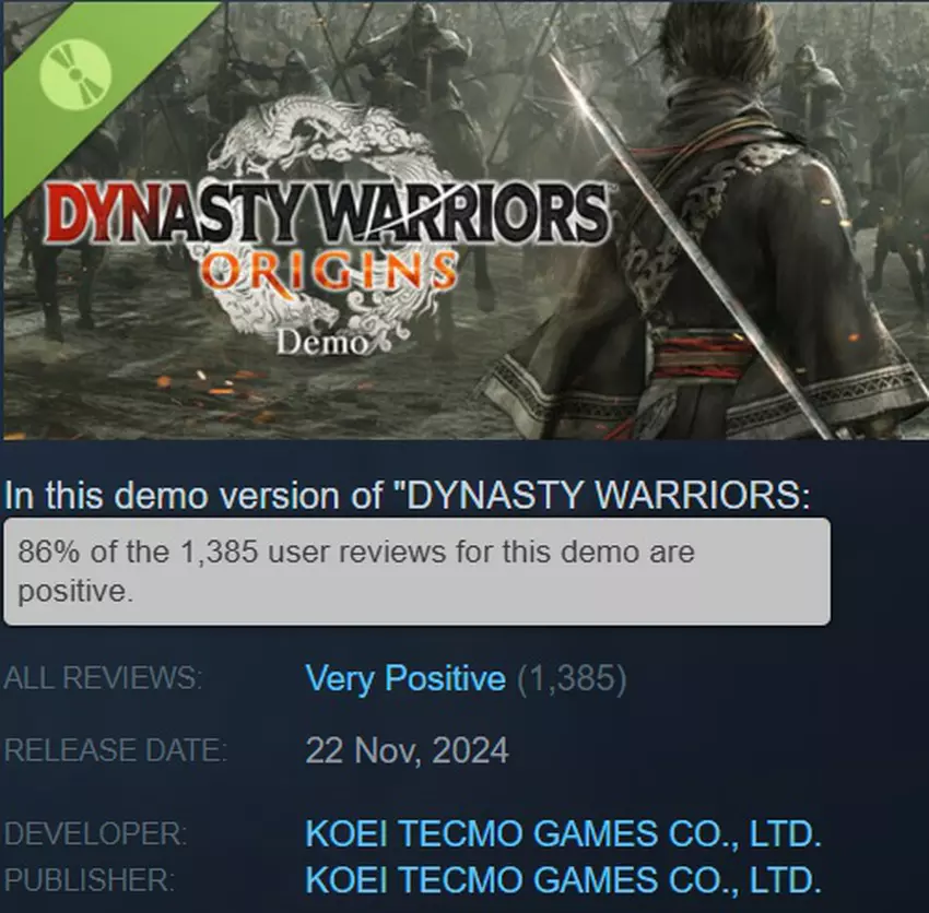 Równocześnie z premierą dema, deweloperzy otworzyli również pre-order Dynasty Warriors Origins, koszt gry to 70 dolarów.