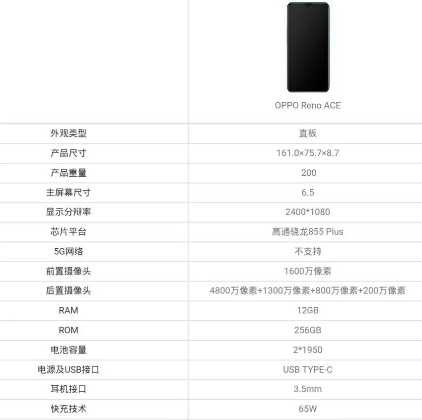 W bazie danych TENAA Oppo Reno Ace działa z indeksem PCLM10. Otrzyma 6,5-calowy wyświetlacz AMOLED o rozdzielczości 2400 × 1080 pikseli i proporcjach 20: 9. Ponadto wiemy, że liczba klatek na sekundę wynosi 90 Hz, jak w OnePlus 7 Pro.