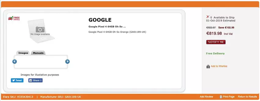Zgodnie z tymi informacjami w przypadku wersji Pixel 4 z 64 GB pamięci żądają 820 EUR, za 128 GB - 940 EUR. Pixel 4 XL został wyceniony na 1126 EUR (128 GB pamięci).