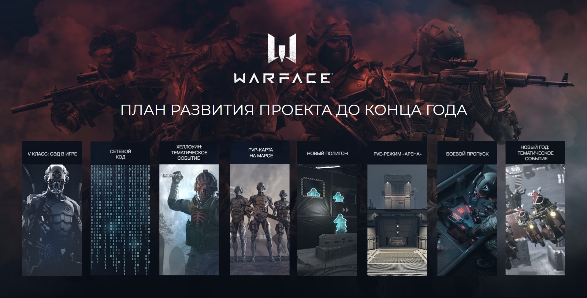 Warface doda również pole treningowe z dodatkowym treningiem, a także nadbudowę, która będzie odbijała uszkodzenia części ciała. Powstanie tryb współpracy „Arena” w trybie PvE, w którym gracze będą walczyć z falami wrogów. Deweloperzy obiecują również nową przepustkę bojową i wydarzenia tematyczne na Halloween i Nowy Rok.