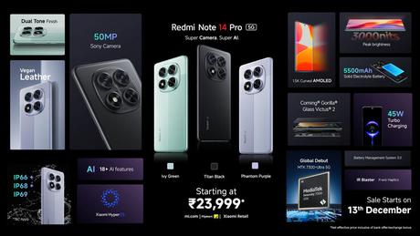 Redmi Note 14 Pro 5G w Indiach zaczyna się od 24 999 Rs (około 295 USD) za wersję z 8 GB pamięci RAM i 128 GB pamięci wewnętrznej. Model 256 GB jest również dostępny za dodatkowe 2 000 Rs (około 24 USD).