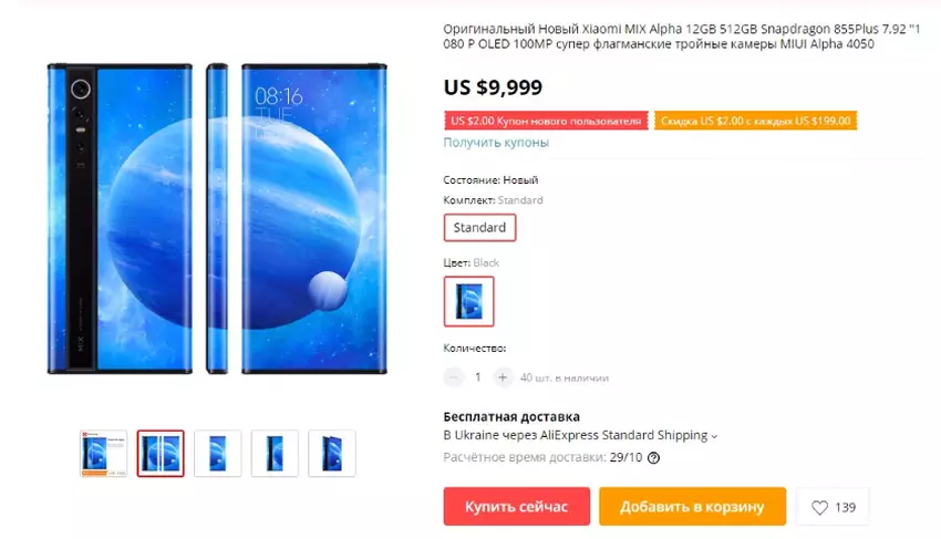 Flagowy model Xiaomi Mi Mix Alpha pojawił się na AliExpress z ceną 10 000 USD