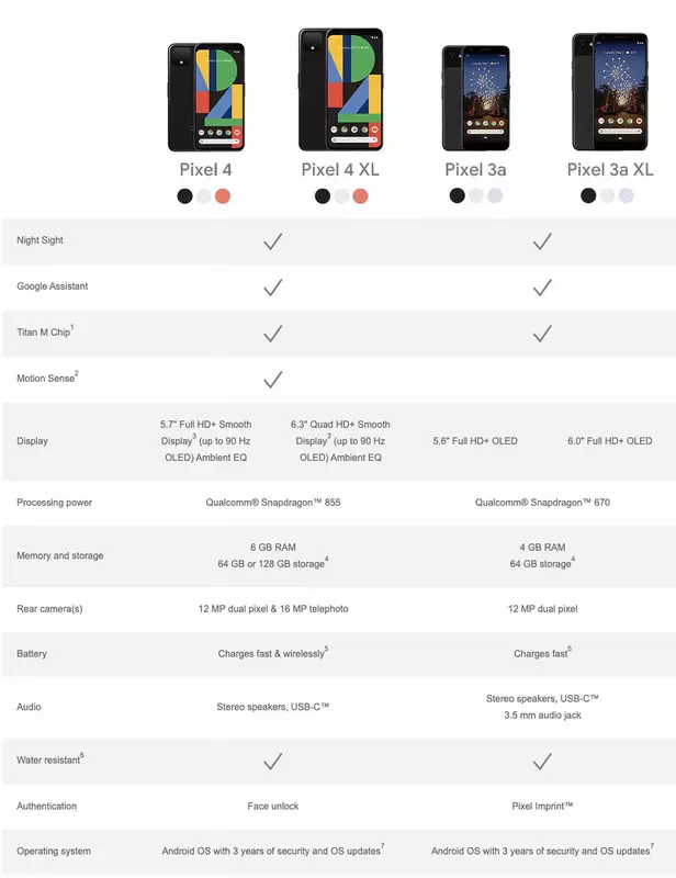 Do takiego wniosku doszedł znany insider Ishan Agarwal (Ishan Agarwal). Fakt, że Google porównuje nowe modele z Pixel 3a i XL 3a (uproszczona wersja Pixel 3 i 3 XL), który zadebiutował w maju tego roku. O Pixel 3 producent najwyraźniej postanowił „zapomnieć”.