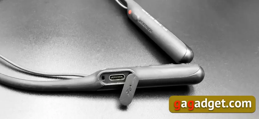 Złącze USB-C znajduje się w dolnej części lewego „kołnierza” (zawsze możesz wejść do niego po raz pierwszy nawet na ślepo), jest zakryte wtyczką na nodze.
