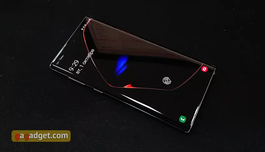 Pod względem biometrii wszystko jest dokładnie takie samo jak w Galaxy Note10 +: rozpoznawanie twarzy i skaner linii papilarnych. Pierwsza opcja nie jest szczególnie niezawodna: smartfon nie ma żadnych dodatkowych czujników, a różne opcje są możliwe w różnych warunkach oświetleniowych. Ultradźwiękowy skaner linii papilarnych w ekranie jest szybki i dokładny. Pod względem tych wskaźników jest już bardzo zbliżony do tradycyjnych skanerów. Przyzwyczajenie się do jego pozycji jest szybkie: lokalizacja skanowania jest podświetlona na wyświetlaczu, ale po kilku dniach już zaczynasz odblokowywać smartfon „bez patrzenia”.
