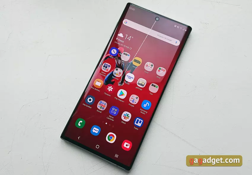 Smartfon wygląda fajnie i oczywiście doskonale wykonany. Zmniejszone wymiary w porównaniu do Galaxy Note10 + mają bardzo pozytywny wpływ na użyteczność. Chociaż niektóre z niezbyt udanych funkcji projektowych (lokalizacja przycisków i brak złącza 2,5 mm) zostały przeniesione do młodszego modelu.