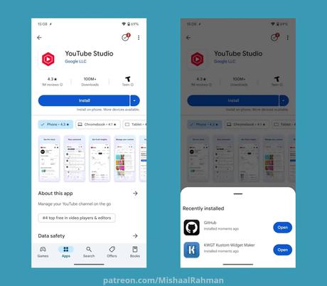 Nowa funkcja pozwala użytkownikom zobaczyć nie tylko ostatnio zainstalowane aplikacje, ale także postęp ich pobierania podczas instalacji. Użytkownicy mogą również przejść bezpośrednio do aplikacji, klikając przyciski obok ich nazw. Ponadto przycisk Download Manager wyświetli licznik pokazujący liczbę ostatnio zainstalowanych aplikacji.