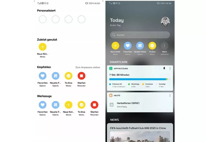 Asystent oferuje wyszukiwanie globalne, natychmiastowy dostęp do wybranych skrótów u góry asystenta, SmartCare z kartami kontekstowymi (kalendarz, pogoda, nieodebrane połączenia, korzystanie z telefonu i zużycie danych), a także kanał informacyjny Huawei Newsfeed z materiałami w różnych językach od wiodących agencji prasowych i dostawców.