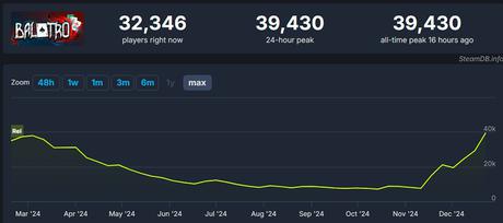 Według serwisu SteamDB w tym samym czasie w Balatro znajdowało się ponad 39 000 osób.