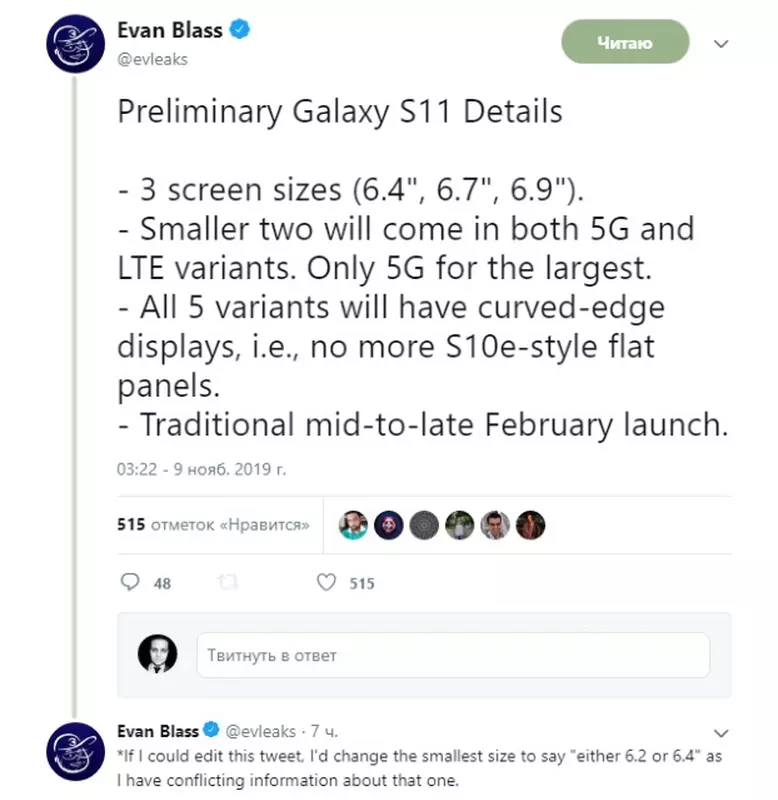 Znany informator Evan Blass (Evan Blass) opublikował kilka szczegółów na temat flagowej linii smartfonów Samsung Galaxy S11.