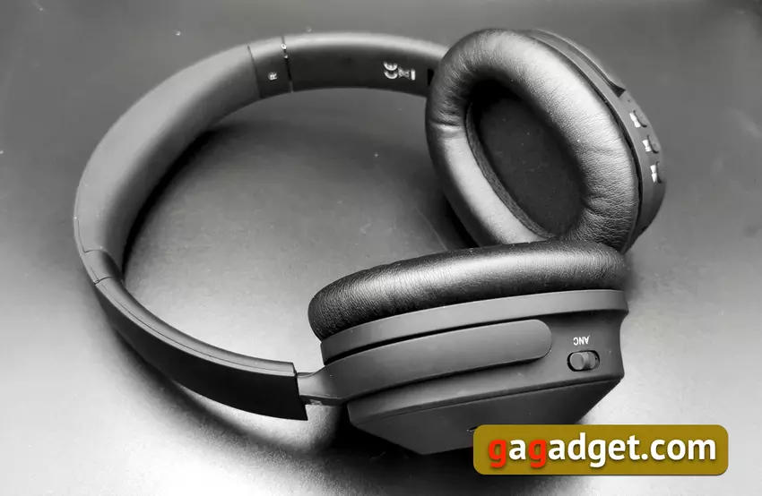 Wejście audio 3,5 mm i przełącznik systemu redukcji szumów znajdują się na lewej słuchawce. Po prawej stronie - złącze ładowania microUSB, przycisk zasilania, klawisze głośności i przewijania oraz kilka diod LED - jedna wyświetla pracę (w trybie pracy parowania miga na niebiesko), druga jest potrzebna do kontrolowania ładowania (gdy świeci na czerwono - ładowanie jest w toku po zakończeniu wyłącza się).