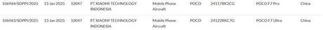 Informacje o Poco F7 Pro i Poco F7 Ultra na stronie certyfikacyjnej Indonesia Telecom. Ilustracja: mysmartprice