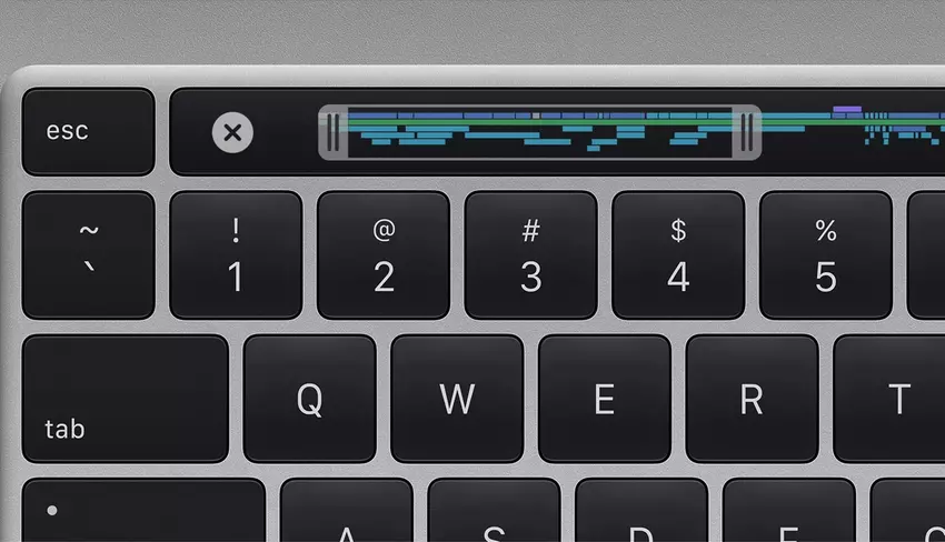 MacBook Pro zachował pasek dotykowy panelu dotykowego. Po jego prawej stronie znajduje się skaner Touch ID, a po lewej klawisz Esc.