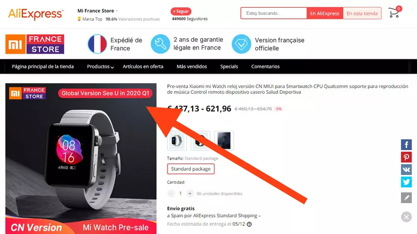 Jeden ze sprzedawców detalicznych z AliExpress (Mi France) twierdzi, że puźniej będzie dostępna wersja globalna. To prawda, że nastąpi to nie wkrótce: pisze, że zegarek Xiaomi Mi wydostanie się z Królestwa Środka dopiero w pierwszym kwartale 2020 roku.