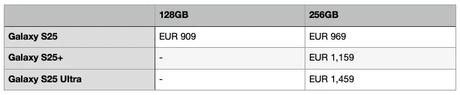 W nowym raporcie Gizmochina twierdzi, że anonimowe źródło udostępniło dokumenty, które ujawniają ceny serii Galaxy S25 na rynek europejski. Oto ceny, które ujawnia dla Galaxy S25, Galaxy S25+ i Galaxy S25 Ultra.
