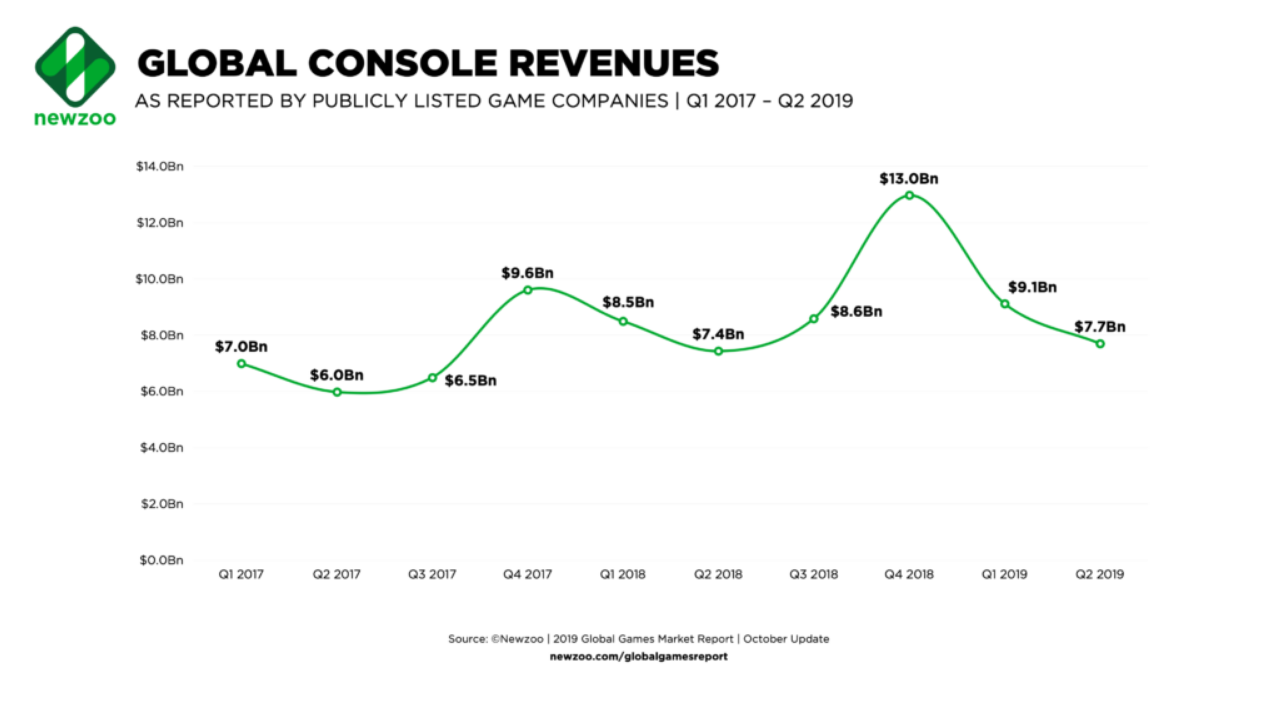 Analitycy musieli nie doceniać oczekiwań ze względu na spowolnienie na rynku konsol do gier. W pierwszych dwóch kwartałach 2018 r. Segment wykazywał wzrost odpowiednio o + 21% i + 24%, ale w 2019 r. W tym samym okresie przychody wzrosły o + 7% i + 4%. Początkowo agencja spodziewała się, że w 2019 r. Konsole przyniosą 47,9 mld USD, ale teraz oczekiwany przychód wyniesie 45,3 mld USD, + 7,3% więcej w porównaniu z 2018 r.