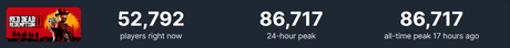 Poprzedni rekord jednoczesnych graczy został ustanowiony w listopadzie 2023 roku i wynosił 77 655 użytkowników. Obecny wzrost aktywności związany jest z wyprzedażą Rockstar Games na Steam, gdzie Red Dead Redemption 2 oferowane jest w najniższej cenie w historii.